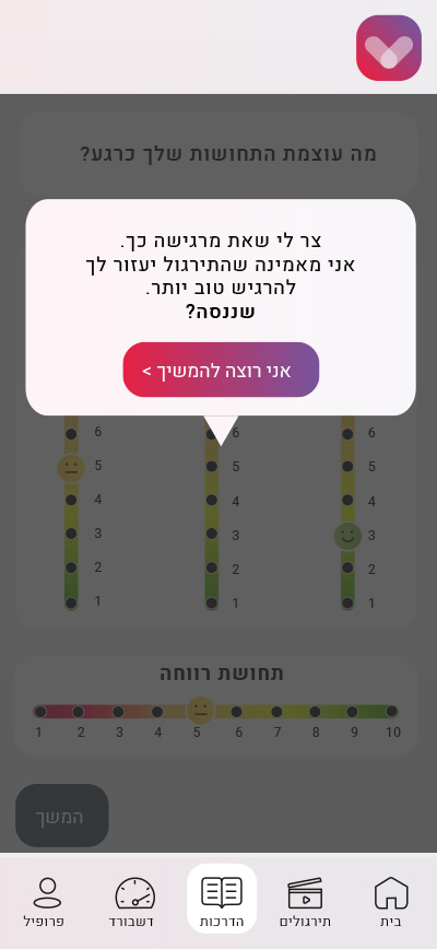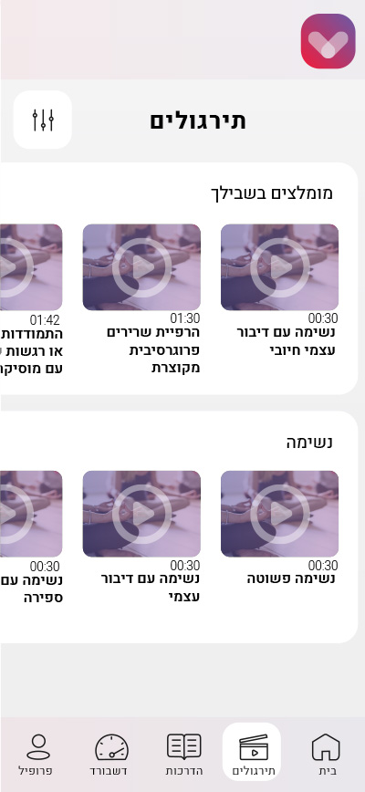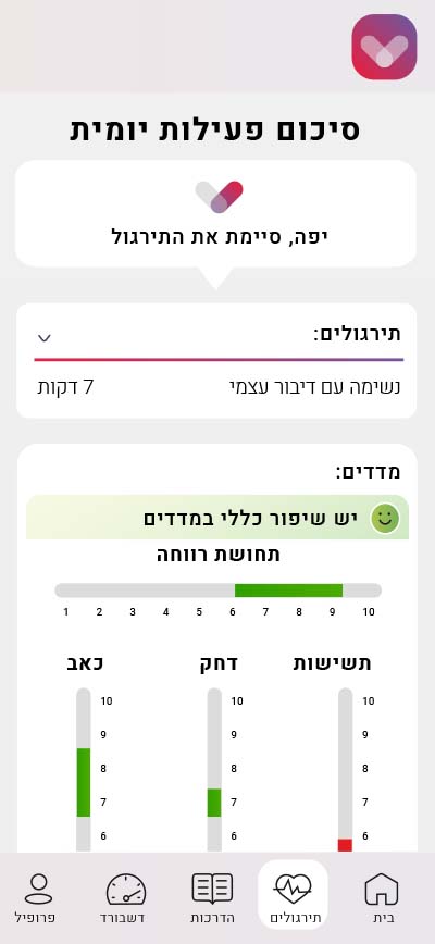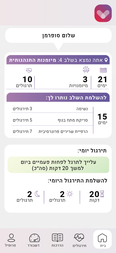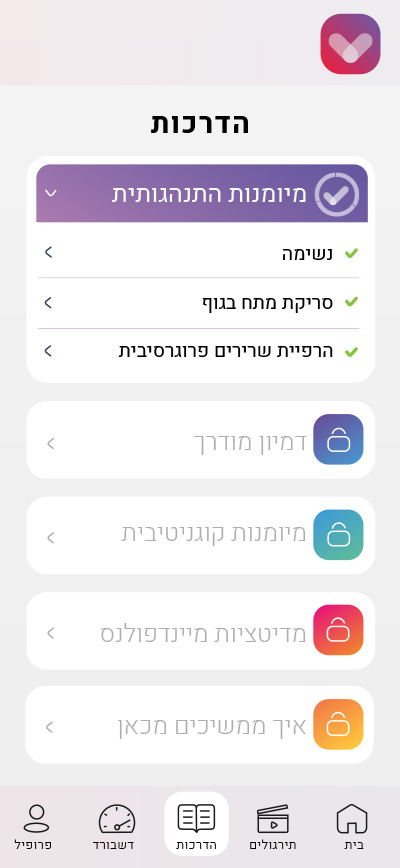- למי שיש גישה קבועה לטלפון חכם, נכונות לתרגל כמה דקות ביום, ומוטיבציה לקחת חלק פעיל בתהליך