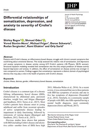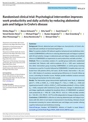 המענק של קרן הלמסלי ישמש לטובת מחקר על טיפול קוגניטיבי התנהגותי ומיינדפולנס במחלת קרוהן, במסגרתו תפותח אפליקציה ייחודית לחולים